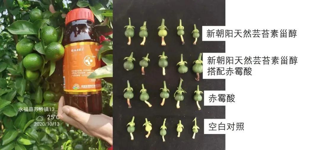 除了溫度、光照會影響果實糖分積累以外,營養的補充和調節劑的使用也決定著果實糖度和著色程度。尤其針對四川晚熟雜柑到后期氣溫慢慢的降低,普通蕓苔素吸收率利用率會大打折扣,而天然蕓苔素能提高作物的光合作用效率,在低溫下吸收利用率高,能夠低溫條件下促進養分、色素和糖分的合成與積累。