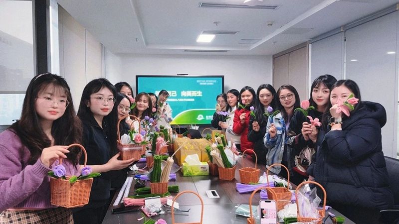 手工制作環節中,大家親手制作郁金香花籃,一花一葉用心編織,在快樂中感受生活的美好?;顒舆^后,公司還為每位女性職工送上了精心準備的節日禮盒,內含天然護膚品、健康養生禮包,寓意“悅己悅心,美好常伴”。